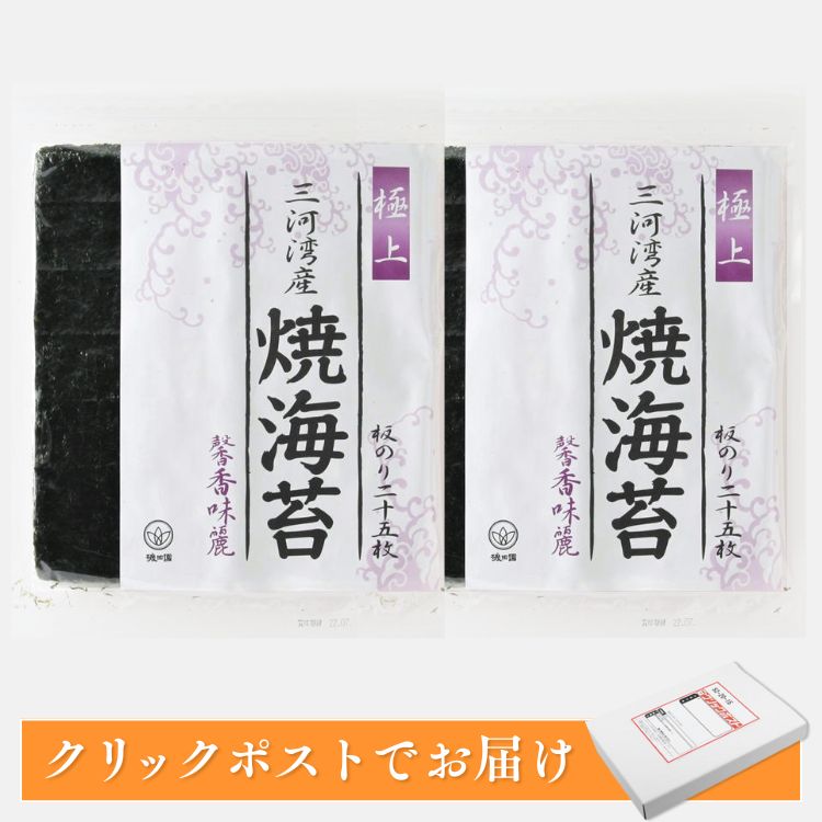 【10%OFF】三河産焼海苔「極上」板のり25枚入 2袋 クリックポスト(送料別途185円)