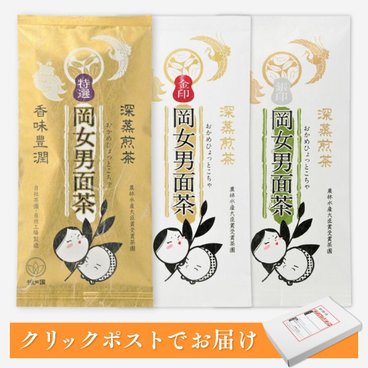 岡女男面茶飲み比べセット ~特選 、金印、銀印 クリックポスト(送料別途185円)