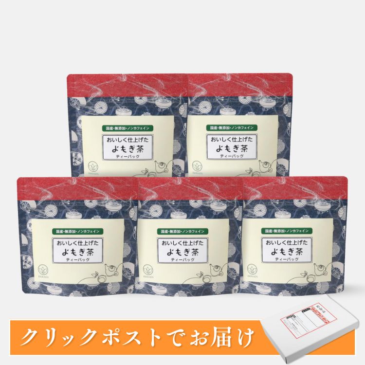 国産・無添加・ノンカフェインのよもぎ茶5袋送料無料セットです。