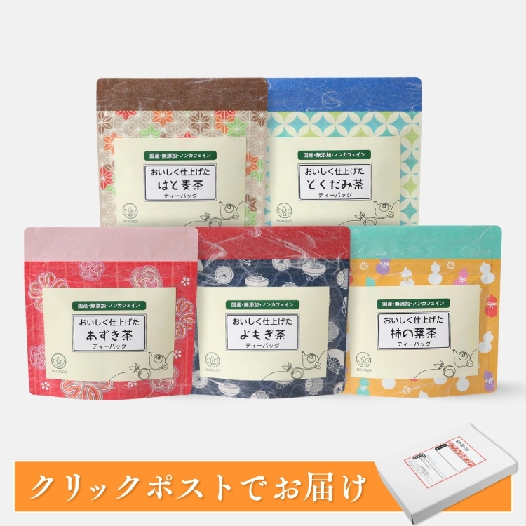 健康茶お試しセット ~柿の葉茶、どくだみ茶、あずき茶、よもぎ茶、はとむぎ茶【送料無料】