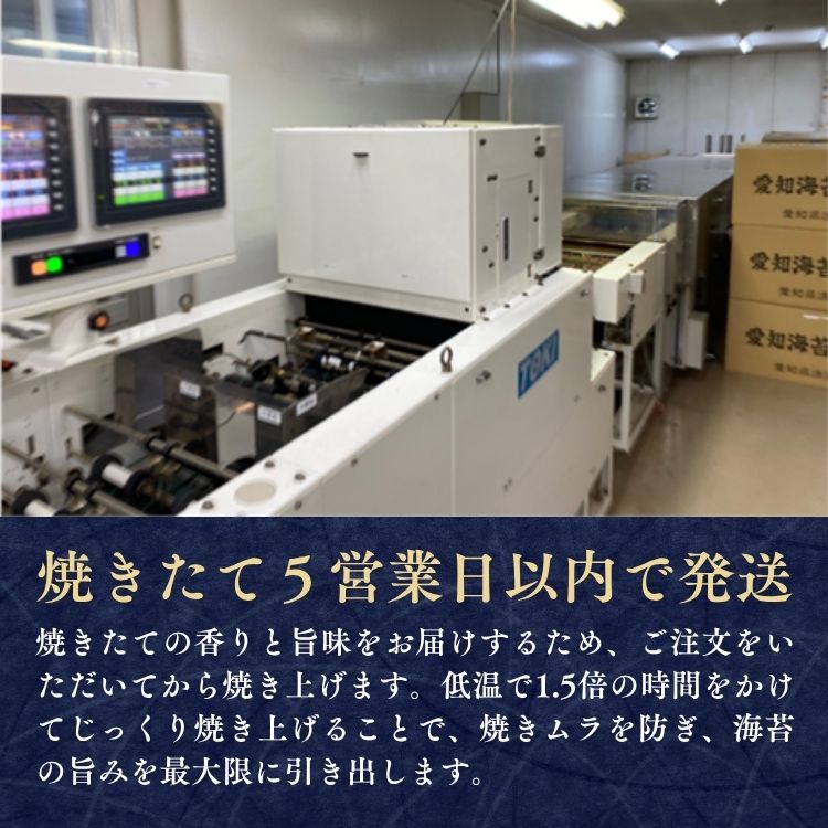 愛知県三河湾の中でも、西尾・味沢で育った最高級(別ク優等級)の海苔を、焼きたてでお届けします。