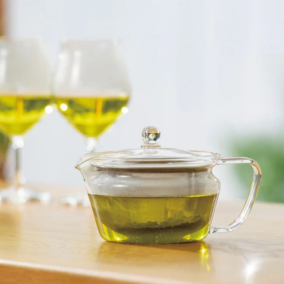 茶茶急須・禅 450ml 価 格 2,530円 円税込 内容量 − 賞味期限(製造日より) −日 数 量 個 買い物かごに入れる 商品内容 1.商品特徴 日本茶をスタイリッシュに愉しむ、耐熱ガラス製の急須。 美味しいお茶を淹れるために、ガラスの形状に沿う大きな茶こしで茶葉の旨味をしっかり抽出します。 注ぎやすさを追求し最後の一滴までスムーズに注げる形状です。 注口は注ぎやすいテーバー形状。 ・お茶の色合いが目で愉しめます。 ・日本茶、中国茶、紅茶やハーブティーとお茶の種類を問わず使えるデザインです。 ・茶こしを外せば、電子レンジでの温め直しもOK。 2.注意事項 割れ物につき取扱にはご注意ください。 3.パッケージサイズ 【商品サイズ】幅168×奥行120×高100 口径120(mm) 【実用容量】450ml 原材料 【素材】 ガラス:耐熱ガラス 茶こし:ステンレス 保存方法 − 製造者 HARIO株式会社 お問い合わせ窓口 1.電話番号及び受付時間 0120-21-22020120-21-2202 AM10:00~PM5:00(日曜定休) 2.メールアドレス isoda1info@isodaen.com
