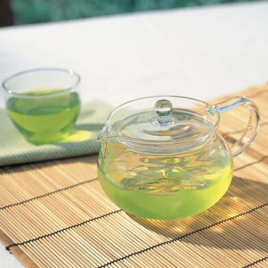 定評のあるHARIOのガラス急須と、季節限定の深蒸し茶をセットにしました。
