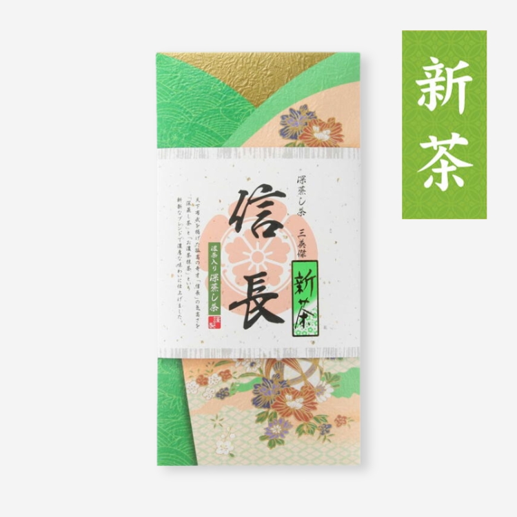 孤高の武将・織田信長をイメージし、深蒸し茶に濃茶(抹茶)を贅沢にブレンド。