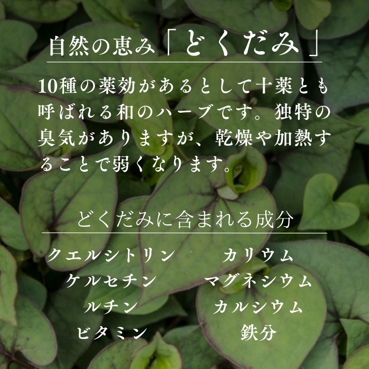 柿の葉、どくだみ、小豆、よもぎ、はと麦、びわの葉 |